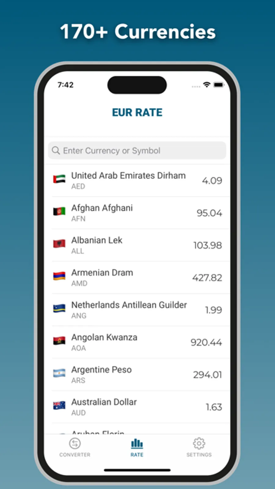 Currency converter app makes it easy to convert between over 170 currencies using the latest exchange rates. With its user-friendly interface, you can quickly and easily input the amount you want to convert and choose the desired currency conversion. The app uses real-time rates to perform the conversion and display the result, allowing you to make informed decisions about your finances while you're on the go. Whether you're a traveler, an investor, or just someone who wants to stay on top of the latest exchange rates, our app has you covered. Download it now and see for yourself how convenient and useful it can be.