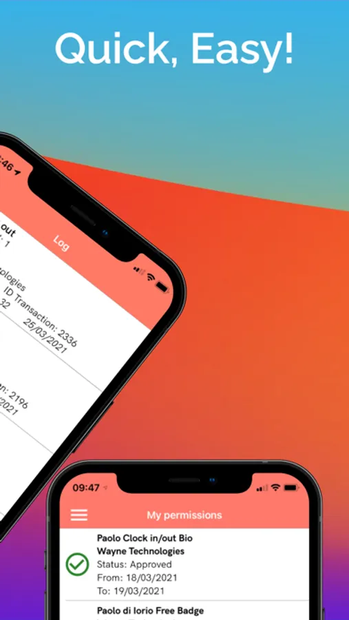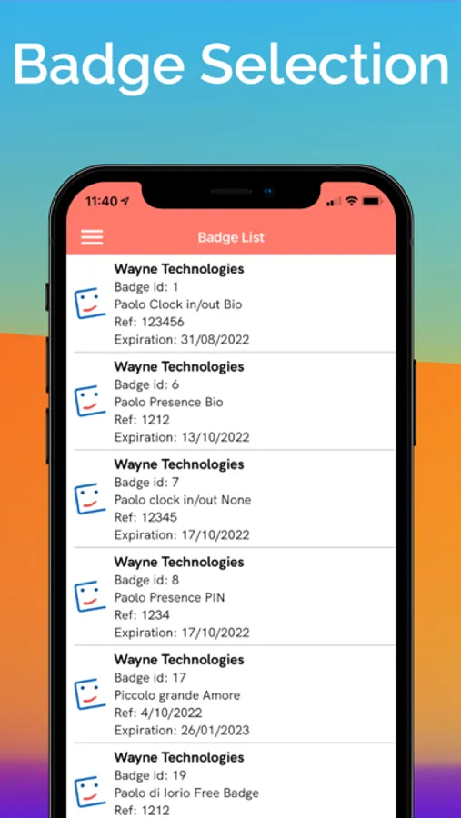 Registered user opens the application and tap on the BadgeMe icon. The application eventually requests user identification by means of biometry or a PIN and sent a request to the server that validates the request based on user position and badge point position. Request is processed successfully only if a user is in the range of a badge point and a smiling badgeme logo is shown on the mobile screen. Otherwise an angry badgeme is shown. All the badge actions are easily accessible to the user through the app.