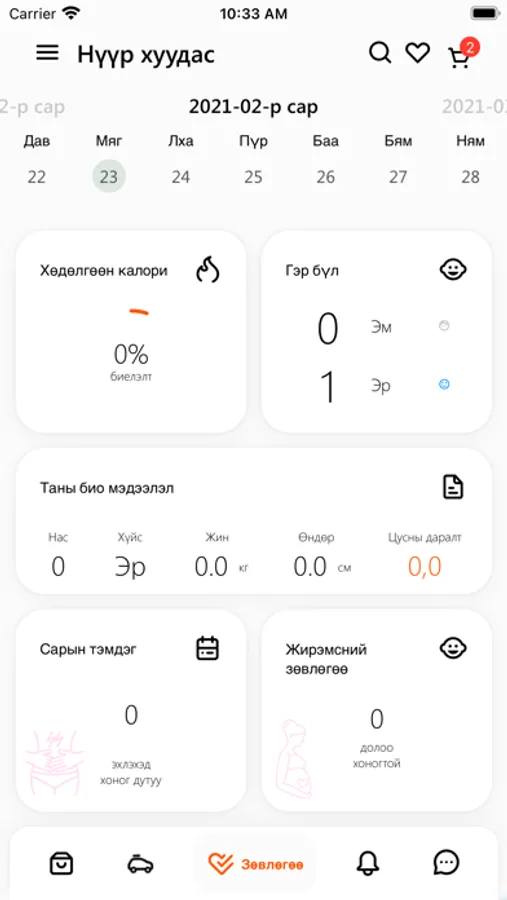 - Тухайн өдрийн болон 7 хоногийн шатаасан калори