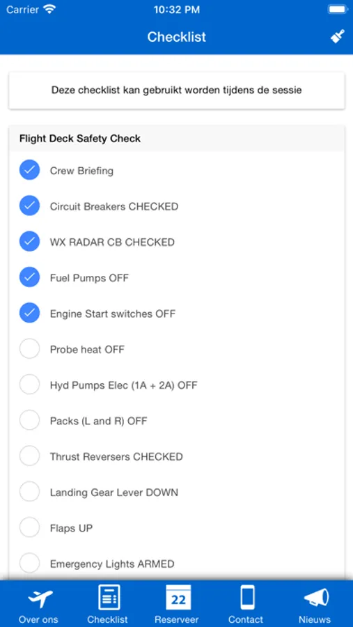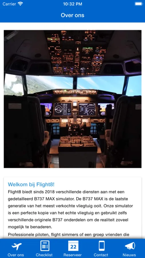 De officiële Flight8 app om te gebruiken tijdens uw vlucht in onze B737 MAX simulator. Gebruik de checklist in onze cockpit zoals een echte professionele piloot.