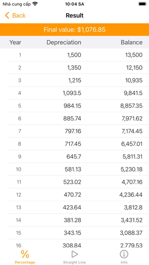 Use this app to calculate the depreciation of assets after a period of use. In addition, the app can also calculate the increase of an asset after a period of accumulation. This is a very intuitive App, simple and easy to use.