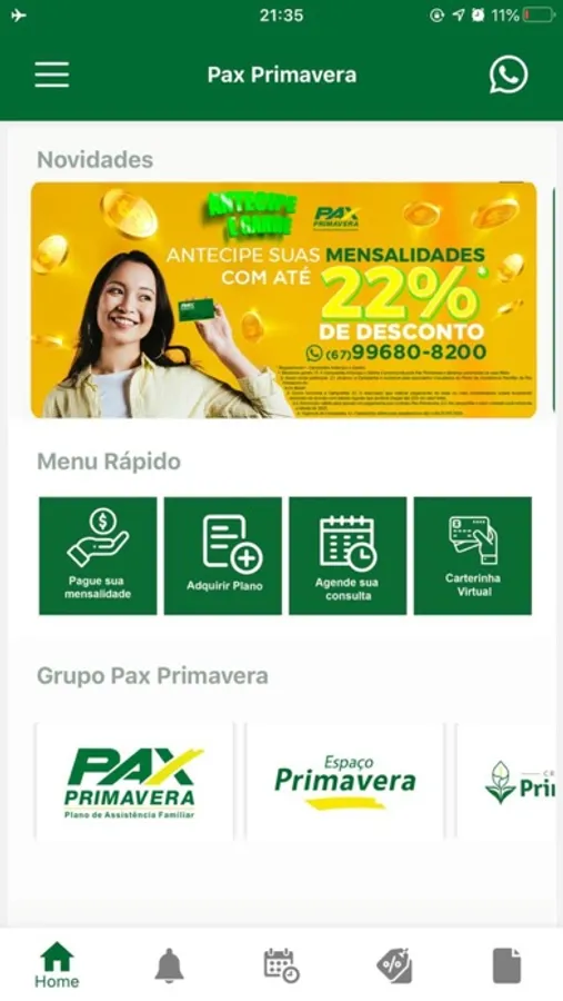 No App Pax Primavera Cliente, você tem acesso a diversos serviços como: carteirinha virtual, campanhas promocionais, solicitação de boleto bancário, solicitação de visita residencial, parcerias, informações sobre unidades, solicitações de consultas medicas e odontológicos e exames em geral.