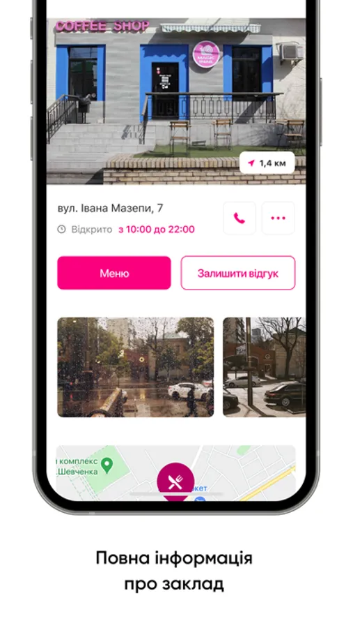 ⁃ Бачити на карті всі наші кав’ярні та час їх роботи.