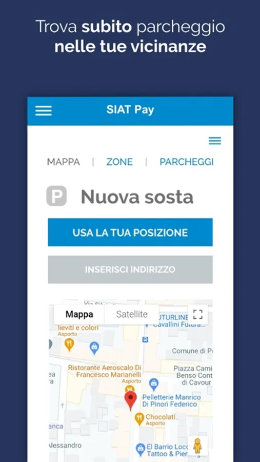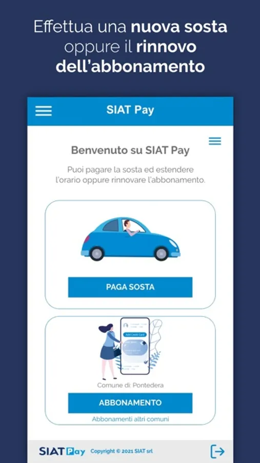 App per pagamento sosta e abbonamento nei Comuni di Pontedera, Cecina e Pomezia gestiti da SIAT Srl.