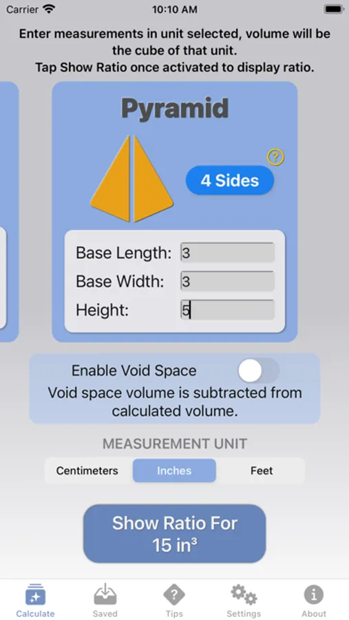 Calculate the volume of your plaster need based on the dimensions of the most common forms in centimeters, inches, or feet. Forms include square/rectangle (cuboid), cylinder, sphere/half-sphere, pyramid (3 and 4 sided), and cone, as-well-as allowing you to enter an already known volume amount.