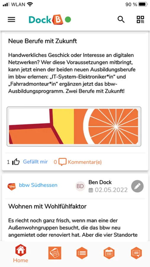 Dock B ist die App für alle Teilnehmer*innen und Mitarbeiter*innen des Berufsbildungswerkes Südhessen