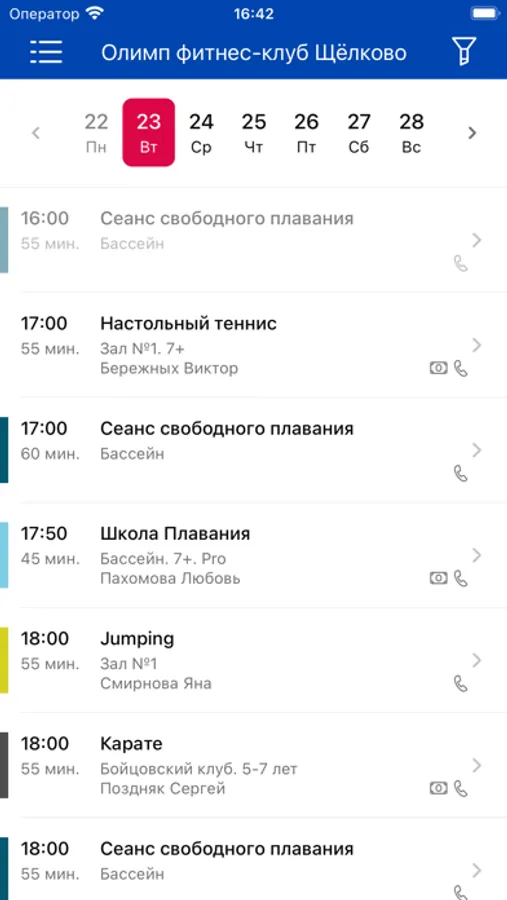 С помощью приложения вы можете следить за новостями, расписанием, оперативно получать информацию об изменениях в расписании и специальных предложениях, а также записываться на занятия и оплачивать услуги