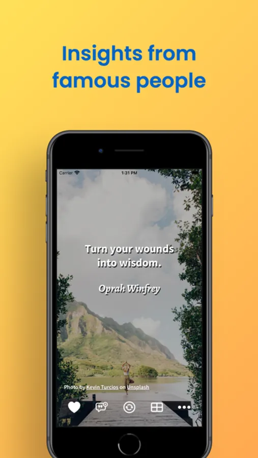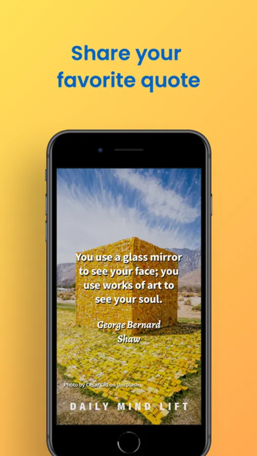 Beautiful images are provided by Unsplash.com. With over 2 millions photos, Daily Mind Lift will always have a fresh background image to pair with a unique quote. You will not get tired of looking at Daily Mind Lift!