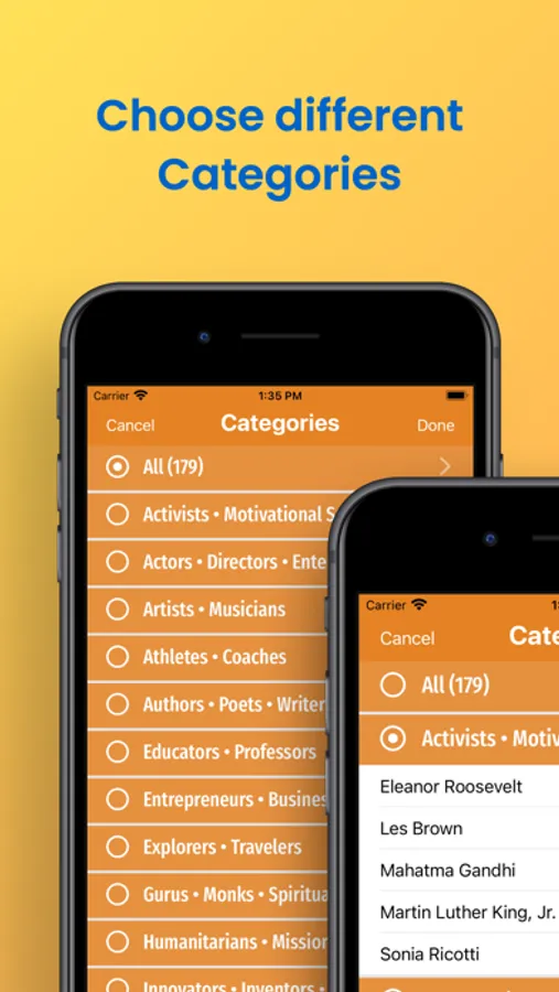 + Select authors from different categories