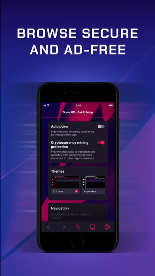 Browse safely and load pages faster with integrated security features like the built-in ad blocker and cookie dialog blocker. This secure browser also comes with cryptojacking protection, stopping others from using your device to mine cryptocurrencies.