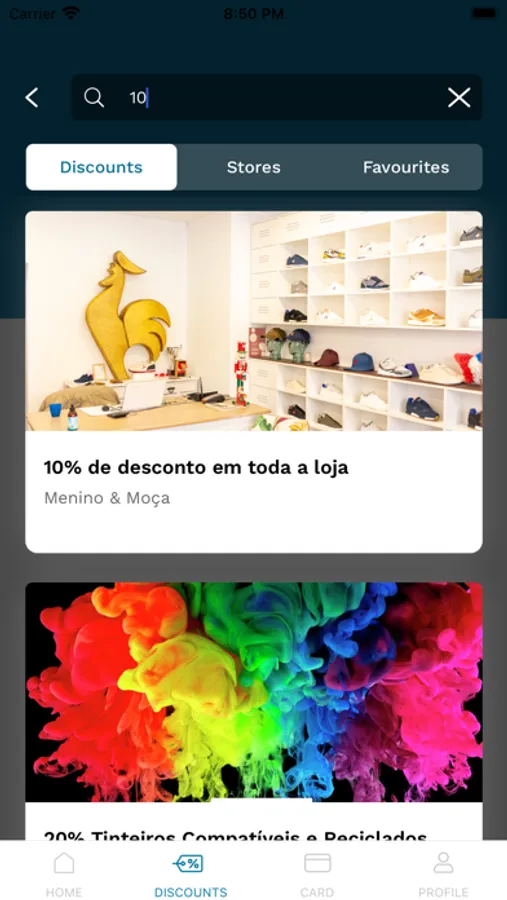 Fazer pesquisas por loja ou por desconto;