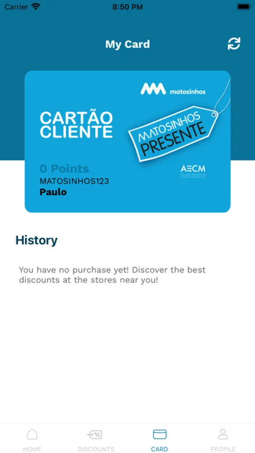 Entre na APP, crie a sua conta e associe o número do seu cartão digital para poder usufruir de descontos.