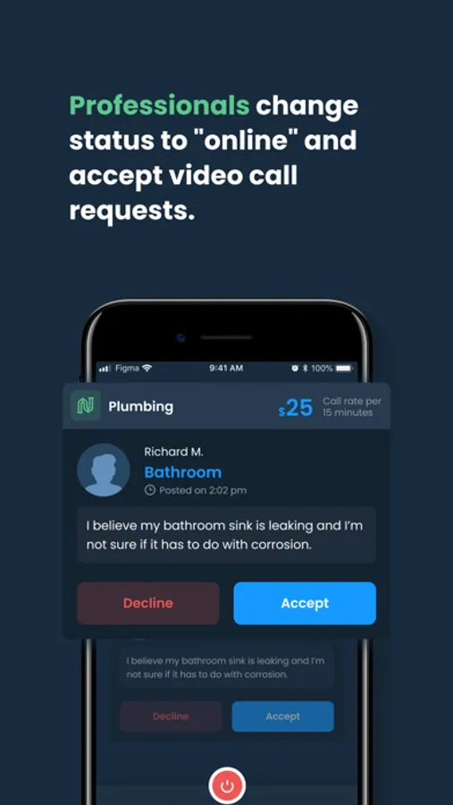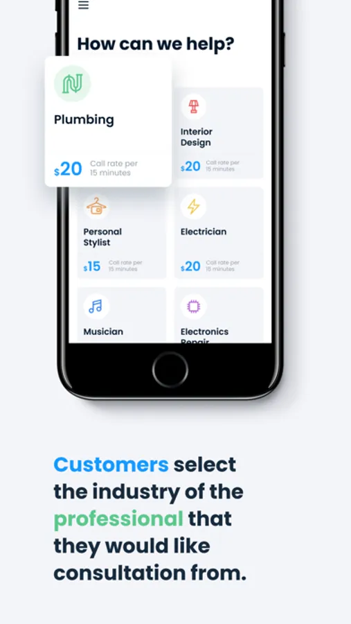 The cost of the call is based on 15-minute intervals and depends on the industry. For example, the rate to speak with a plumber may be $20 per 15 minutes. So a 15-minute call will cost $20 and a 30-minute call will cost $40. The 15-minute rate is clearly visible when selecting the industry and submitting a request. The 15-minute rates are intended to help customers save money from having a professional physically go to the customer's location while saving time from scouring the internet only to find a partial answer or solution.