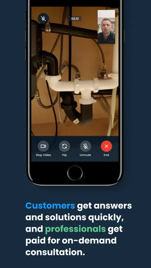 Customers select an industry, provide a description of the question or issue and submit their request for a video call with a professional. The video call request with the customer's description is immediately sent out to all of the professionals from the selected industry. In minutes, the customer is connected with a professional for a live video call so the customer can engage in dialogue with the professional, showing the professional the specific, unique situation that the customer would like to address. After the professional answers all the customer's questions, the customer now has all the information needed to complete the task, a second opinion, the answers to questions, or a solution. It is simple, quick, and effective.
