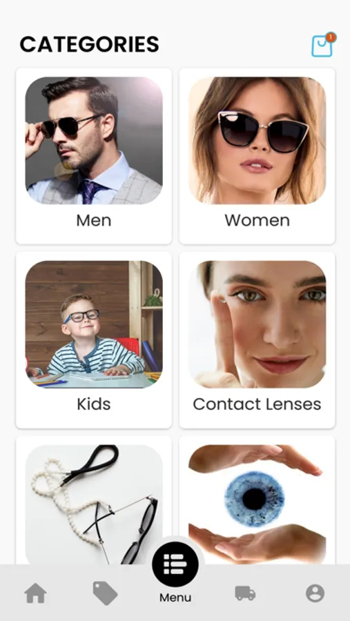 Selling and equipping sunglasses and medical glasses, selling medical and colored contact lenses, solutions, drops and checking