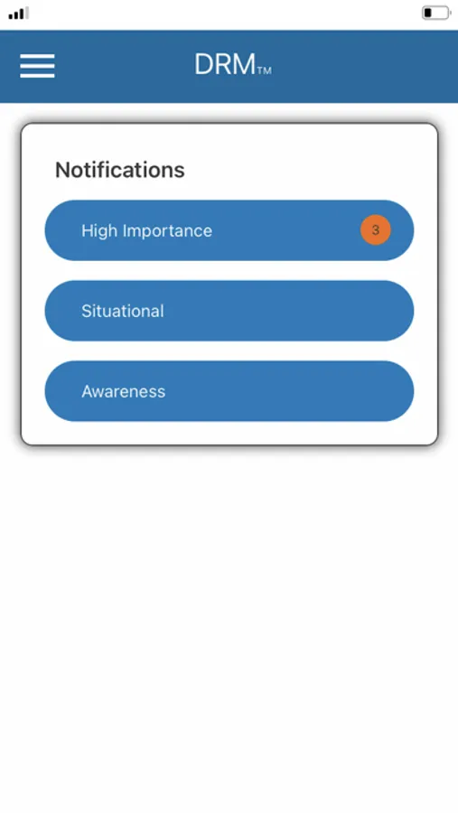 The app is designed to be used as a messaging tool for a customer, employer, or an organization to communicate with their employees, staff, members, or clientele. Only authorized DRM administrators have the authority to send messages via event codes to subscribers. The authorized DRM administrator has the option of selecting one or multiple event codes to send a message to multiple groups at once, at one of three levels of alerting: