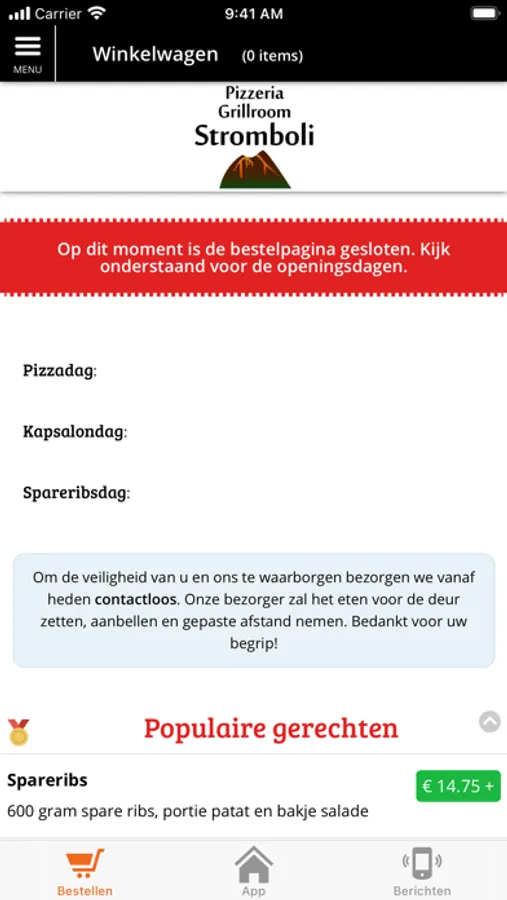 Download onze app en blijf op de hoogte van het laatste nieuws en de nieuwste acties, aanbiedingen en kortingen. Via onze app kunt u onze menukaart bekijken en direct vanaf uw telefoon uw bestelling plaatsen. U kunt via de app ook met iDEAL betalen!