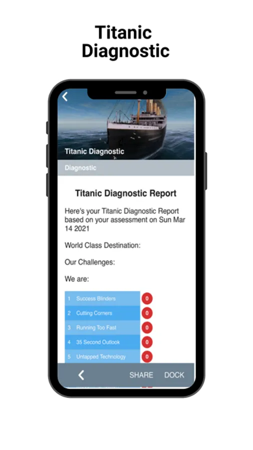 The Titanic Diagnostic is designed to help you LEARN from the Titanic Story so you can cruise to your destination – avoiding the icebergs that lurk in the shadows right beyond your sight.