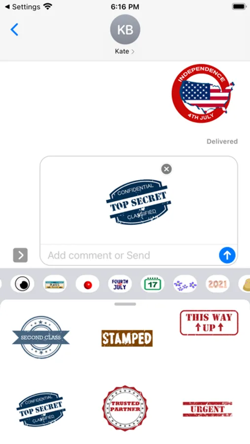 Express yourself in new ways with KAT Stickers you can put anywhere in your chat. Scale, rotate, and layer stickers; even place them on photos you send and receive!