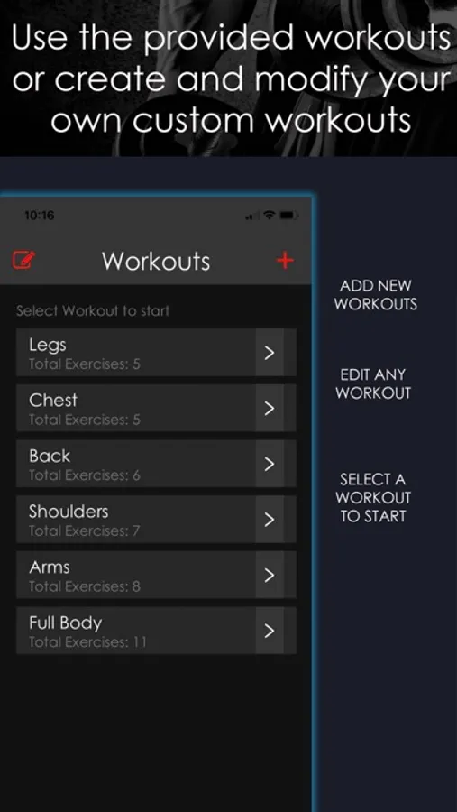 The design of Training Tracker’s interface makes it simple to navigate. A few exercises and simple workouts come preloaded in the app for use. You can use them as they are or edit them to fit your needs. This apps interface allows you to easily enter your own exercises. You can give them any name you like and use them to build your own custom workouts based on your typical gym routine, or any new routine you would like to log and track.