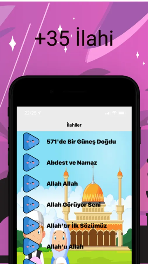 Uygulama içerisinde İmanın şartları, İslamın şartları ve Allah'ın 99 adı ilahiler ile desteklenmiş olup çocuklarımız bu ilahileri hem dinleyerek hem söyleyerek ezber yapmış olacak ve öğrenecekler.