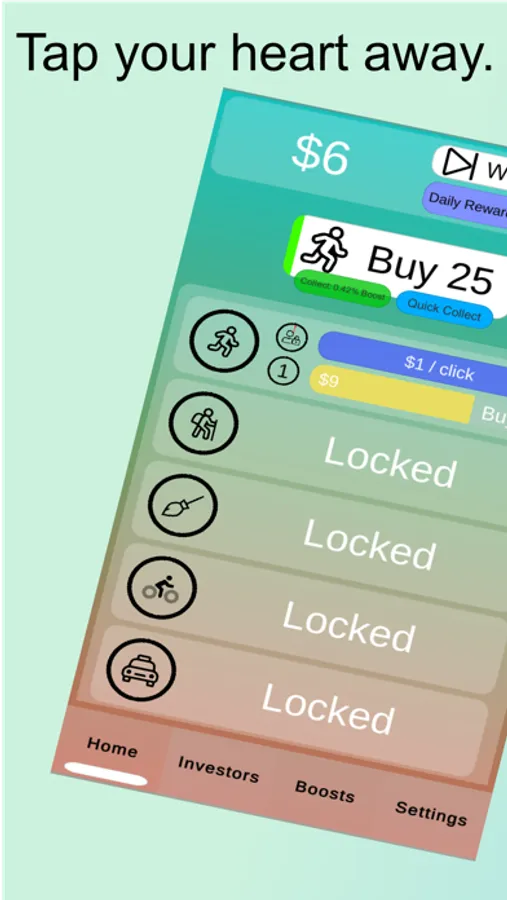It's a clicking game where you can start from a humble person walking on his/her feet and start to collect money and make your way to the top! There are dozens of levels to unlock, and each unlocking each level will make you a richer person. Your mission is to collect enough money to get to the next level, and eventually become the biggest tycoon. As you move forward with the game, you'll require more investment to unlock the next level, which is more challenging and the fun will increase with it.