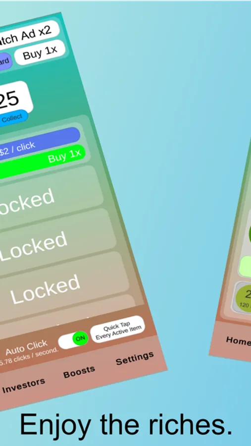 If you are looking for a clicking game that has a simple gameplay that doesn't requires much thoughts and controlling, then this is a perfect game for you. Enjoy endless clicking and earning and going to the top through this satisfying game. Feel good and proud about the wealth you've gathered and continue your journey to become a billionaire tycoon.
