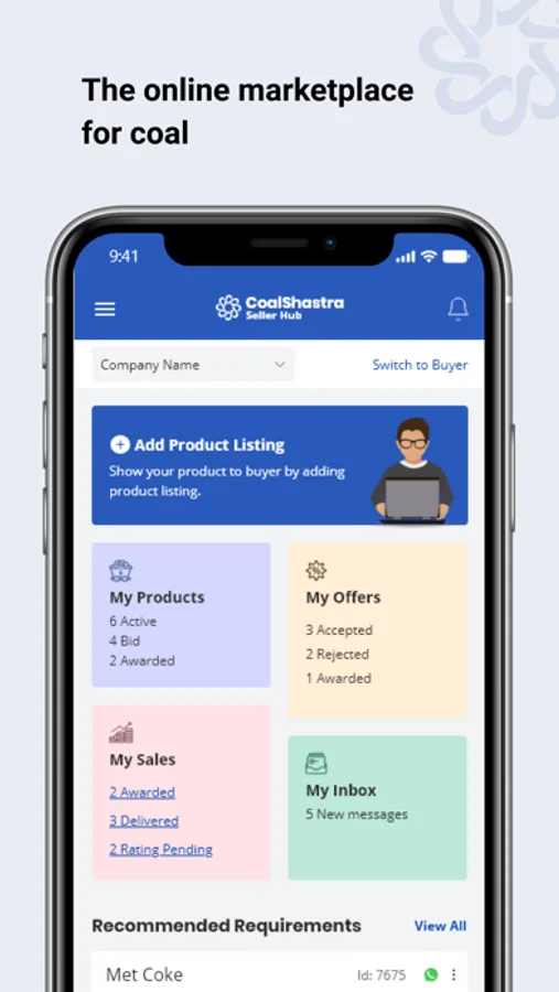 One-click role change system: You can change your role as either a Buyer or a Seller with a single click. You do not need separate profiles to sell or buy coal online.