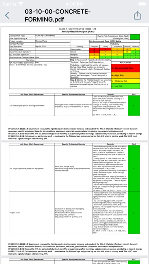 Our proprietary construction software efficiently allows for the creation and real-time management of OSHA and EM 385-1-1 compliant administrative construction plans and Activity Hazard Analysis. This single-source, automated solution will allow you to focus on what you do best. A software made for the industry, by the industry.