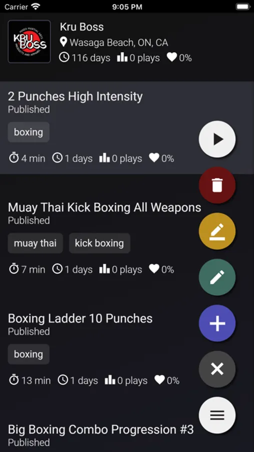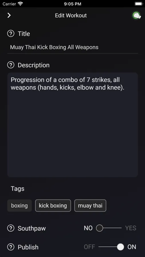 Create and edit workouts mixing strikes (hands, kicks, knees, elbows). Play other people's work outs and stay in shape! The best boxing bag work companion app.