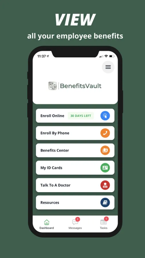 With BenefitsVault, all of your employee benefits information is stored securely in one place. You can enroll, view your benefits, access ID cards, and find helpful resources for medical providers and prescription discounts. Stay informed by viewing assigned tasks and messages from your company and much more!