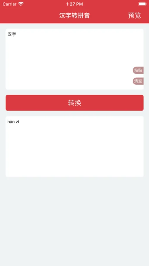 一键将文字转换成拼音,输入或者粘贴单个或者多个汉子,点击转换按钮即可显示出汉子的拼音全拼,同时还支持预览,方便阅读识字!