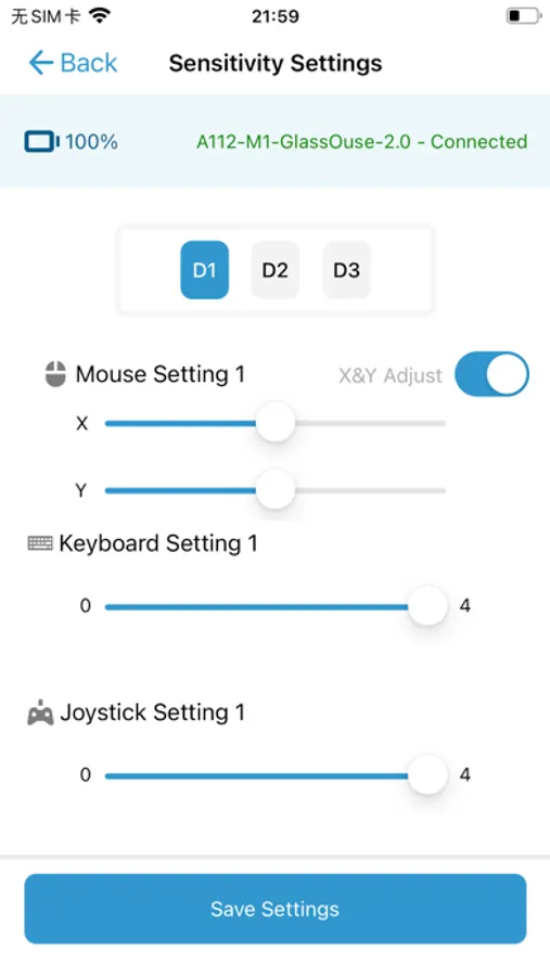 ● Sensitivity Settings: Adjust the app to the sensitivity of the X-axis and Y-axis separately for those who need assistance with upper movement, left movement, and lower bottom movements.