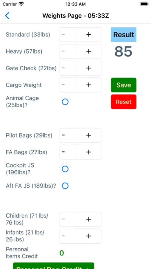 The purpose of this app is to reduce a pilots workload leading up to departure time. Features include: ability to auto-calculate weight and balance to determine how much the aircraft is overweight by and how many bags to remove, FAR 117 FDP calculation, calculation for perf init cargo number, and more.