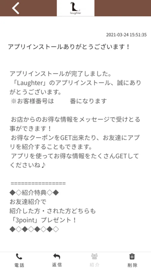 このアプリでは、Laughterの最新情報の受け取りや便利な機能を使う事ができます。