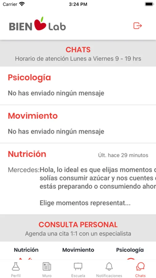 • Chat en vivo con Nutriólogas y Psicólogos, para acompañarte en el proceso.