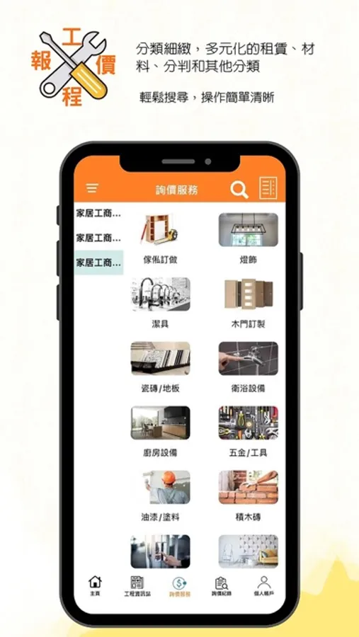 - 平台包含多類型工程服務項目已供客人搜尋,每項會提供多個服務供應單位以選擇。