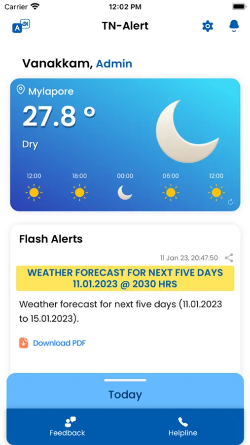 App gives different sound alerts for push notification to varied level of weather alerts. User gets flood risk alerts based on the forecast of their location and can submit the feedback on it to back the system.