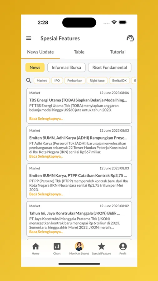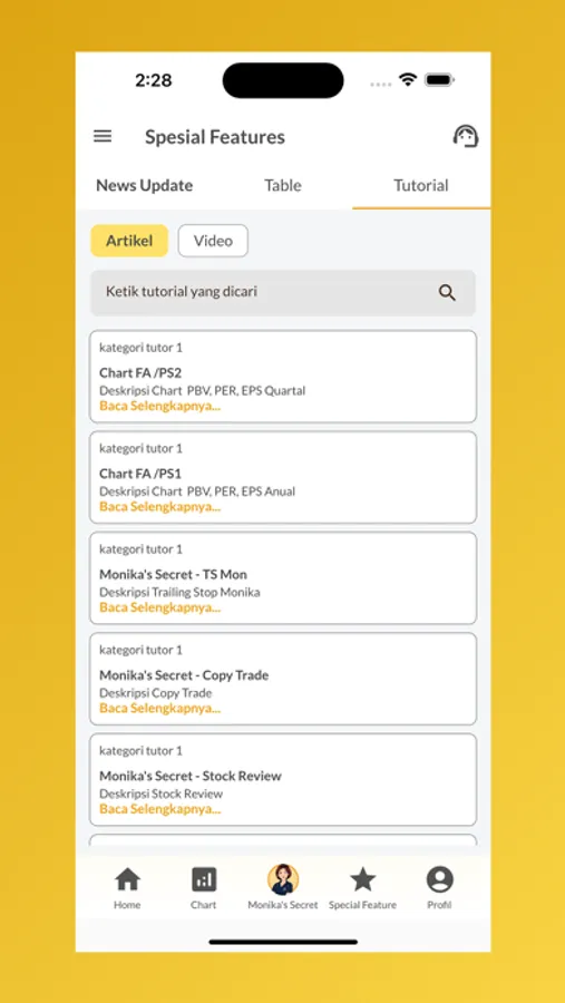 Memberikan informasi chart, screening dan alert secara realtime. dan membuat anda serasa memiliki asisten pribadi dalam bisnis pasar modal ditengah-tengah kesibukan anda sehari-hari.