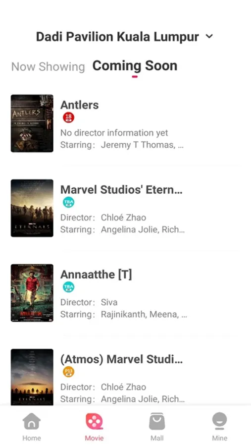 --Add movies you’re looking forward to the “favourite” list and get a reminder when they come to the cinema.