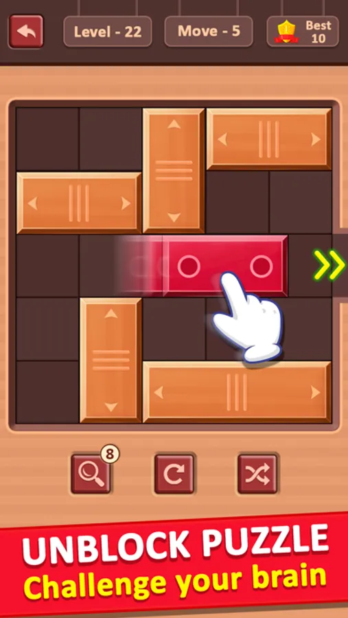 Free wood block move puzzle with more than 1000 levels.