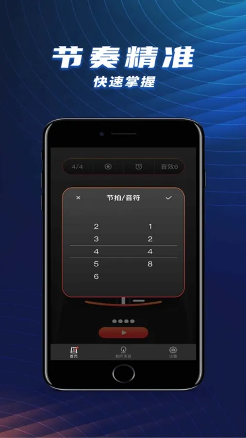 节拍器乐器大师是一款专业的音乐节拍器,支持多种节拍划分,不同节拍自由选择,只要你热爱音乐,不论你是初学者入门还是专业进阶人士都适用于这款应用。是您在进行乐器训练时的必备工具之一。