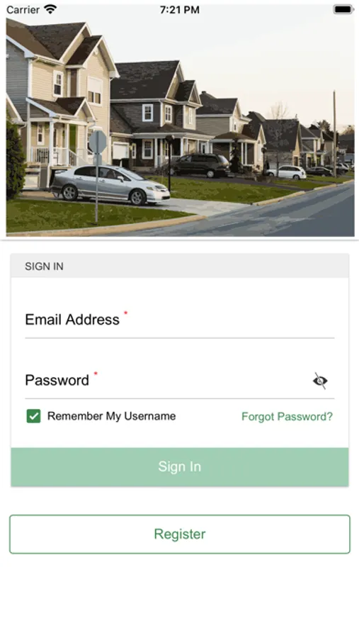 If you already have a login setup through www.omegamgmt.com, login to the App using the same email address and password you use for your association website. If you do not have a current login to your association site, simply click the register button and submit your information. Once your registration is approved, you will receive an email with a link to set your password and then you will be able to log into your account directly from this app.