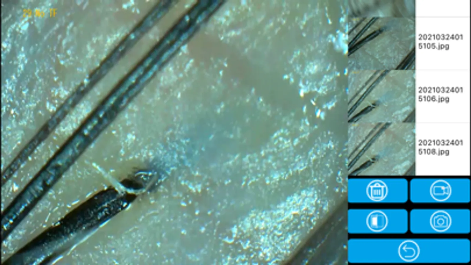 The device works in AP mode, and the mobile phone and device constitute a point-to-point network; through app link to the device to view the real-time video of scalp; to understand the growth of hair.