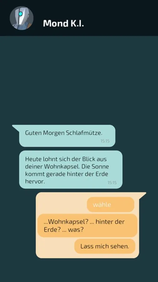 Du lebst und arbeitest am Mond. Eines Tages erhältst du eine Nachricht von deiner Tante, dass deine Cousine Mia verschwunden ist. Sie macht sich schreckliche Sorgen und bittet dich um deine Hilfe. Vom Mond aus!? Kein Problem! Mit neuer Technologie und deiner Mond KI reist du als Major Moon virtuell in Mias Wohnung und startest mit der Indiziensuche. Der Schutz von Mias Privatsphäre ist für dich da nicht so wichtig – immerhin willst du sie ja finden.