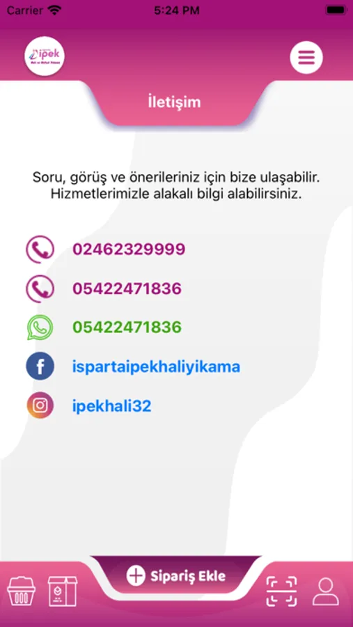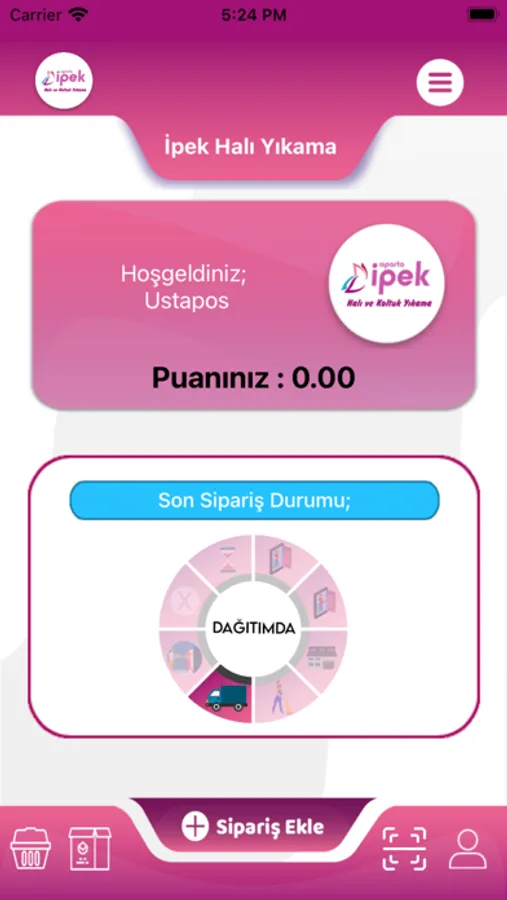 Isparta ve çevre illerin en profesyonel ve gelişmiş halı yıkama fabrikası olan İpek Halı Yıkama olarak değerli müşterilerimizin bütün taleplerini en iyi, en hızlı ve en profesyonel şekilde karşılayabilmek için oluşturulmuş olan bu programla artık müşterilerimize daha yakınız. Bu programla bize çok kolay bir şekilde sipariş verebilir ve vermiş olduğunuz siparişlerinizin durumunu kolayca takip edebilirsiniz. Ayrıca her siparişinizde puan kazanacak ve kazandığınız bu puanları sonraki siparişlerinizde ödeme yaparken kullanabileceksiniz.