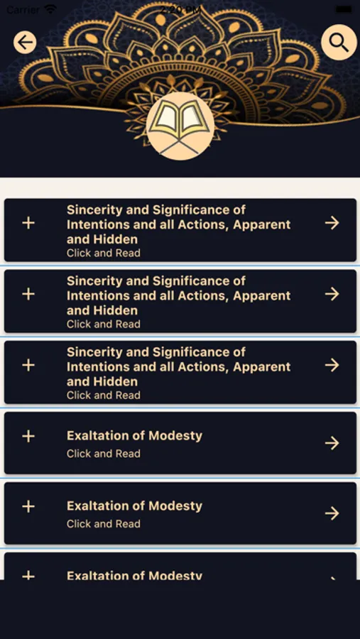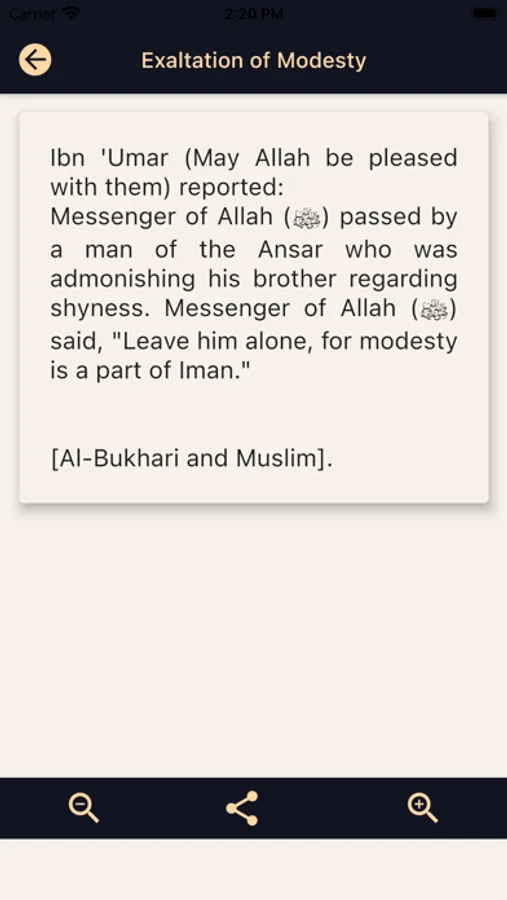 In the Hadith Section, you can read the Hadiths of the Prophet and share them on social media or via normal message.