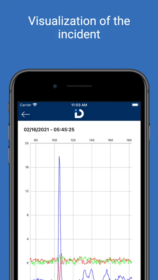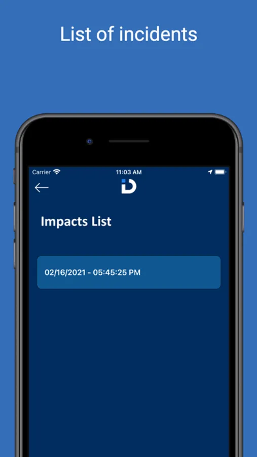 The application allows the IDR user to connect their IDR device with the IDR application in order to review the X, Y, and Z accelerations of their device's impacts. the application allows the user to add text and upload images relating to the impact data before submitting their impact report to the server.