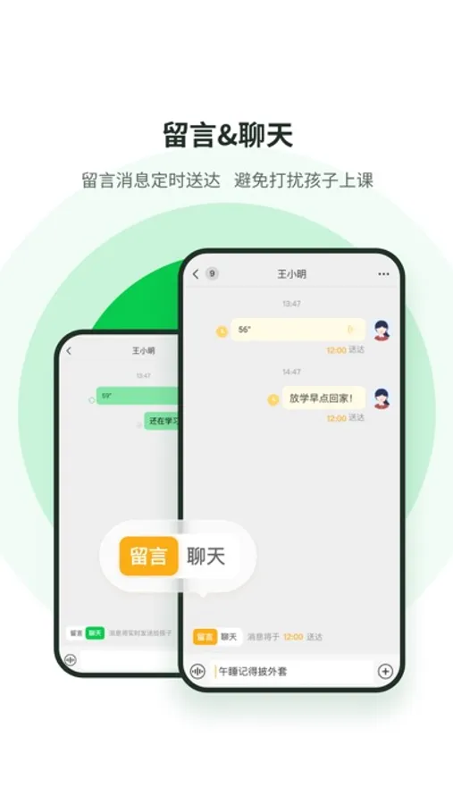 -留言功能:留言消息定时送达,避免打扰孩子上课。