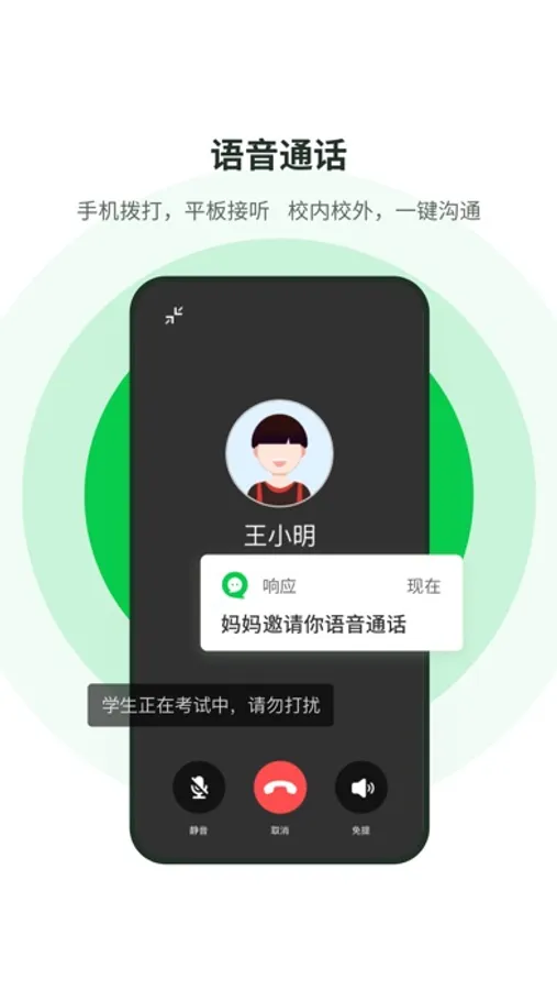 -语音通话:手机拨打,平板接听;校内校外,一键沟通。